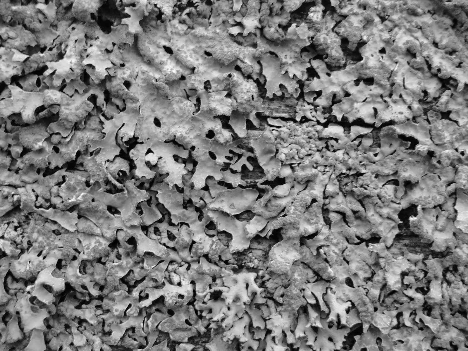 Here are a couple of the pictures I did manage to salvage of the fungus on the fence rail. The first is a straight up macro which I converted to black & white. The cloudy sky wasn’t helping my light situation and the normal color of the fungus was lost but I think the structure and texture show through.