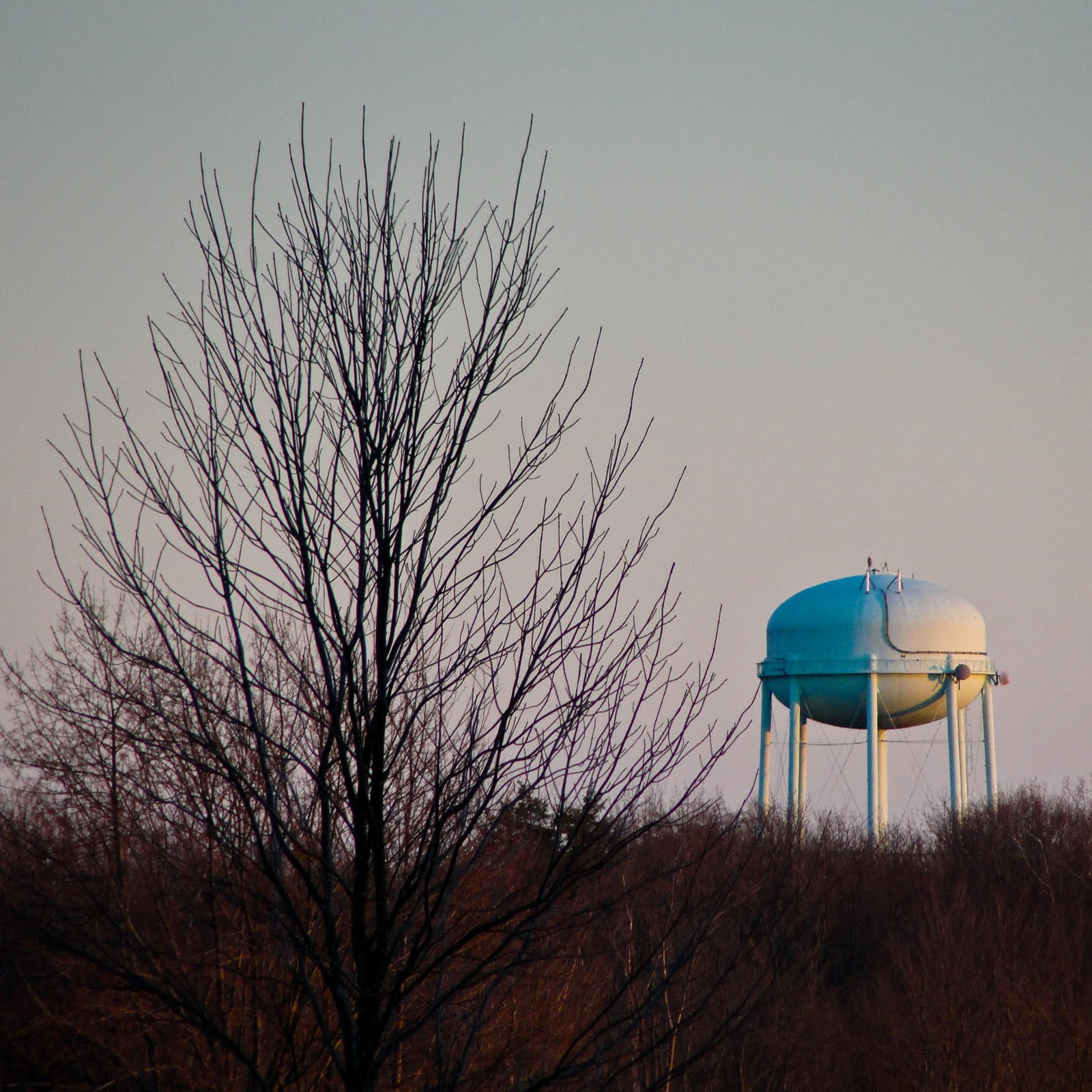 The day was shaping up to be a wash out for taking pictures, but about an hour before my work day was over the sky cleared and the sun was shining brightly.  I didn’t stay any longer at work than I needed to and ran out with my camera to capture the light.  I knew exactly what I wanted to photograph…  the water tower at the Central New York Psychiatric Center.  There is a road about a mile from the tower that offers a nice view through a clearing in the woods.  I drove straight there and parked the car.