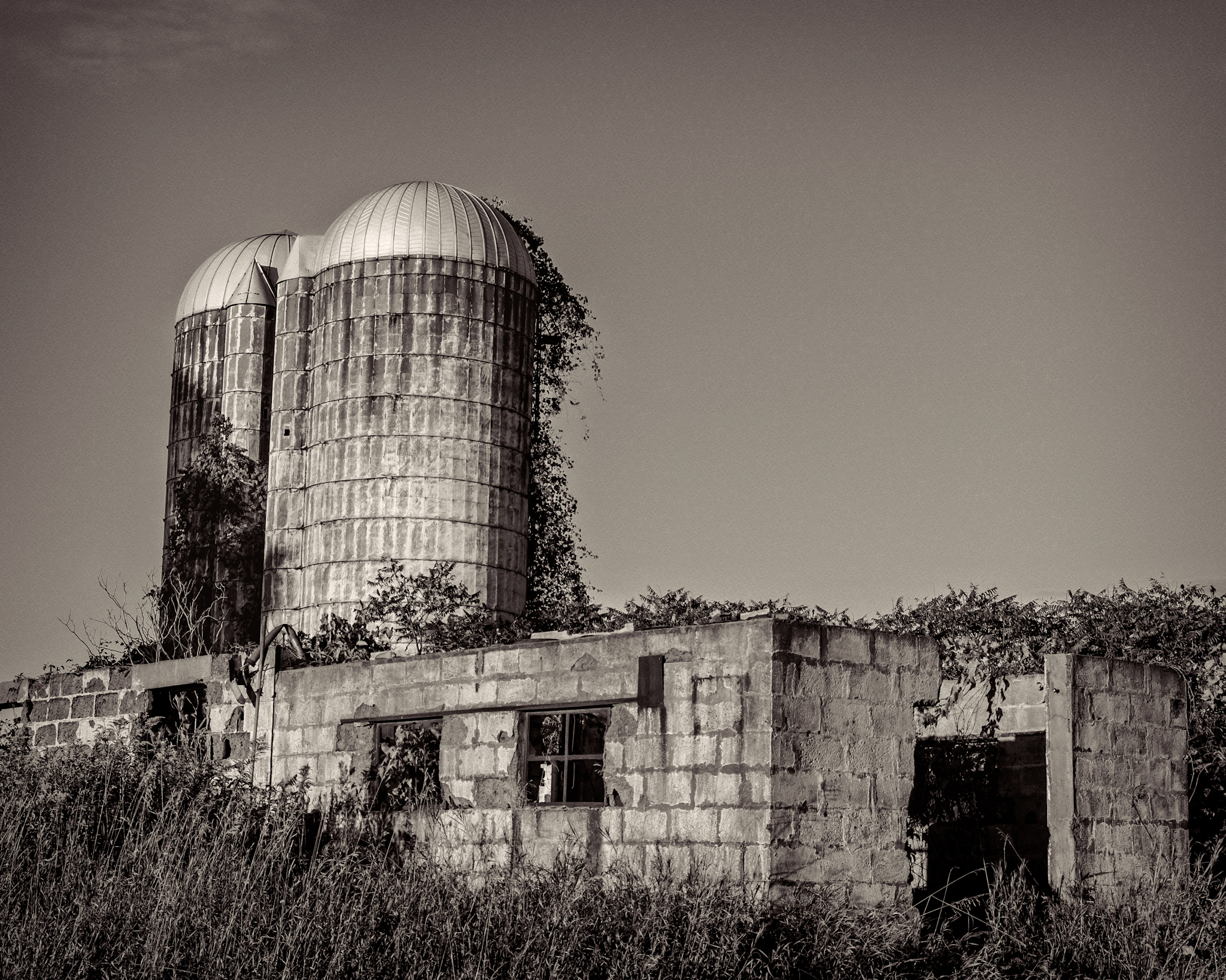 I have been driving past this old barn for over 20 years. I barely gave it a second thought as I flew by on my way to work or out with the family. It wasn’t until I started my interest in photography did the old barn take on a different look for me. I started to notice how the light would play across the remnants of the structure or reflect off the top of the silos. I finally broke through my hesitations and stopped yesterday just before sunset to capture a few pictures.