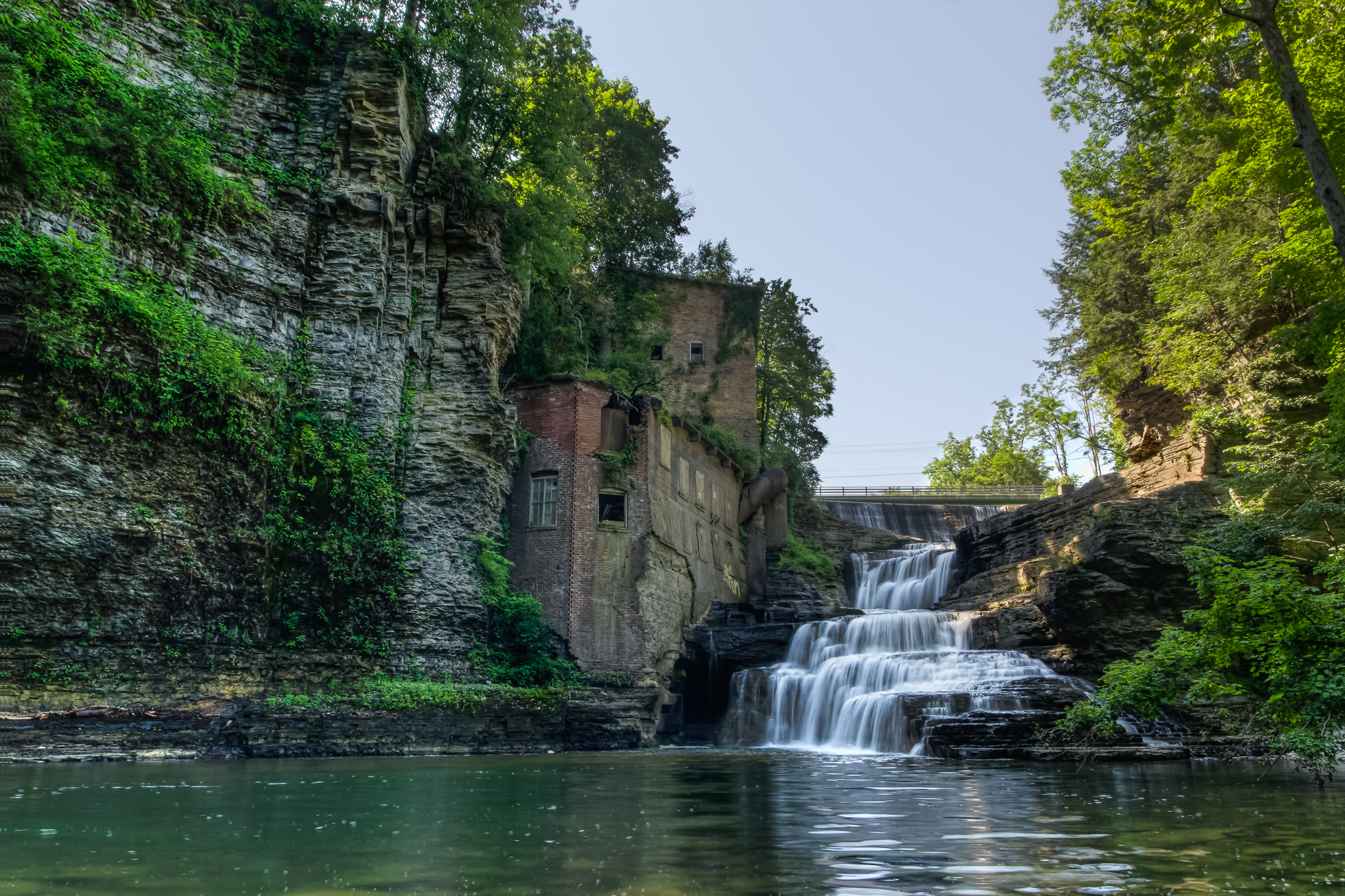 I had to visit early in the morning since I needed to be back in Binghamton in the afternoon to pick up my daughter from orientation. My next visit to Wells Falls will be later in the day. The sun was not in a good position to illuminate much of the gorge or the old hydro-electric plant built into the walls. Maybe it was better this way though since the water was not in direct sun either. A 3 image, +/-2EV bracket allowed me to capture the range of light and a trip into Photomatix brought everything together.
