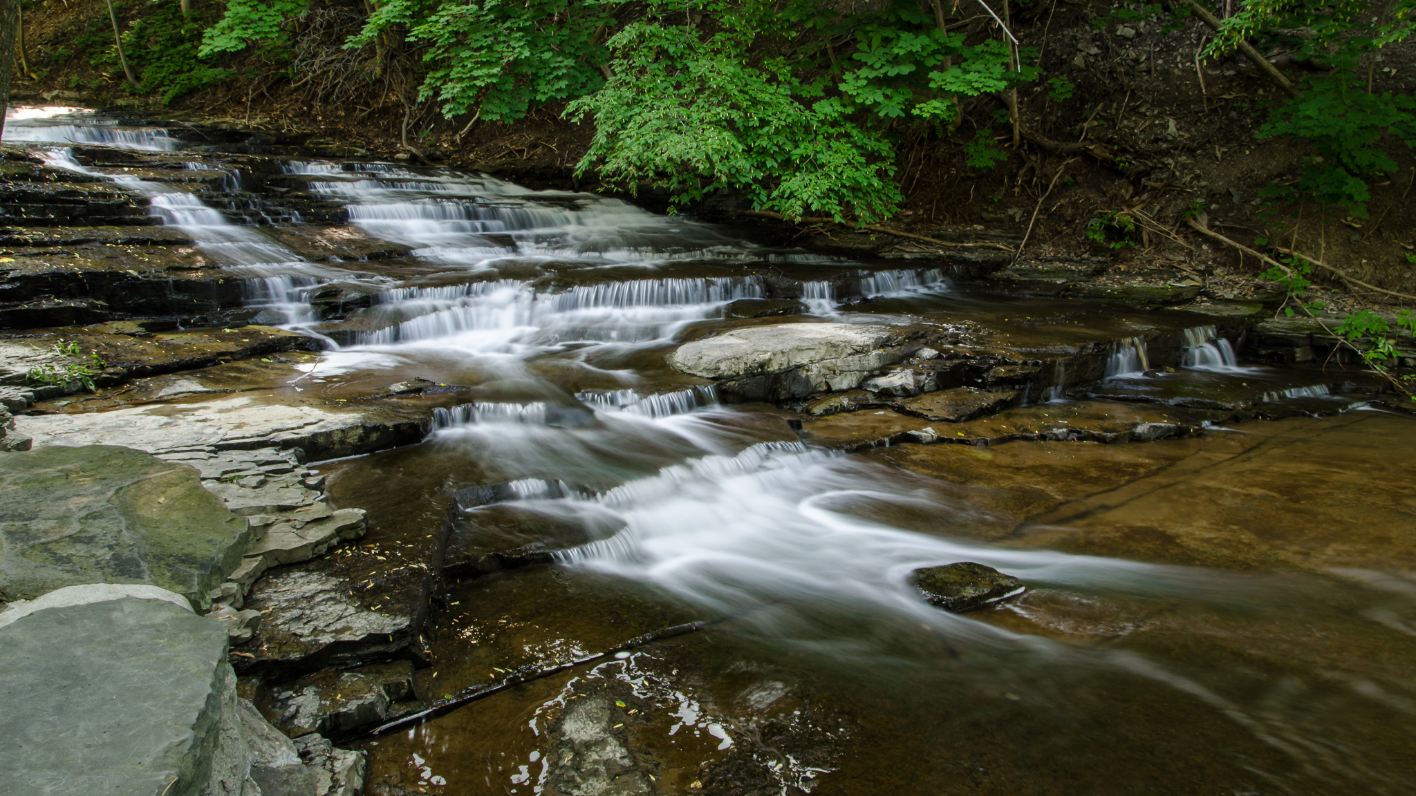 Cascadilla Falls is on Cascadilla Creek right in the city of Ithaca. I was able to park along a side street and walk a short distance to the entrance of the trail. I also did not read the entire website for this falls as the trail is blocked about half way to the falls from the end I started at. I wasn’t able to reach the main falls and since I still had another waterfall on my list for the day I didn’t search out the other end of the trail and work my way down to the falls. It wasn’t a big issue though since the creek is full of beautiful cascades and I was busy capturing all that I could.