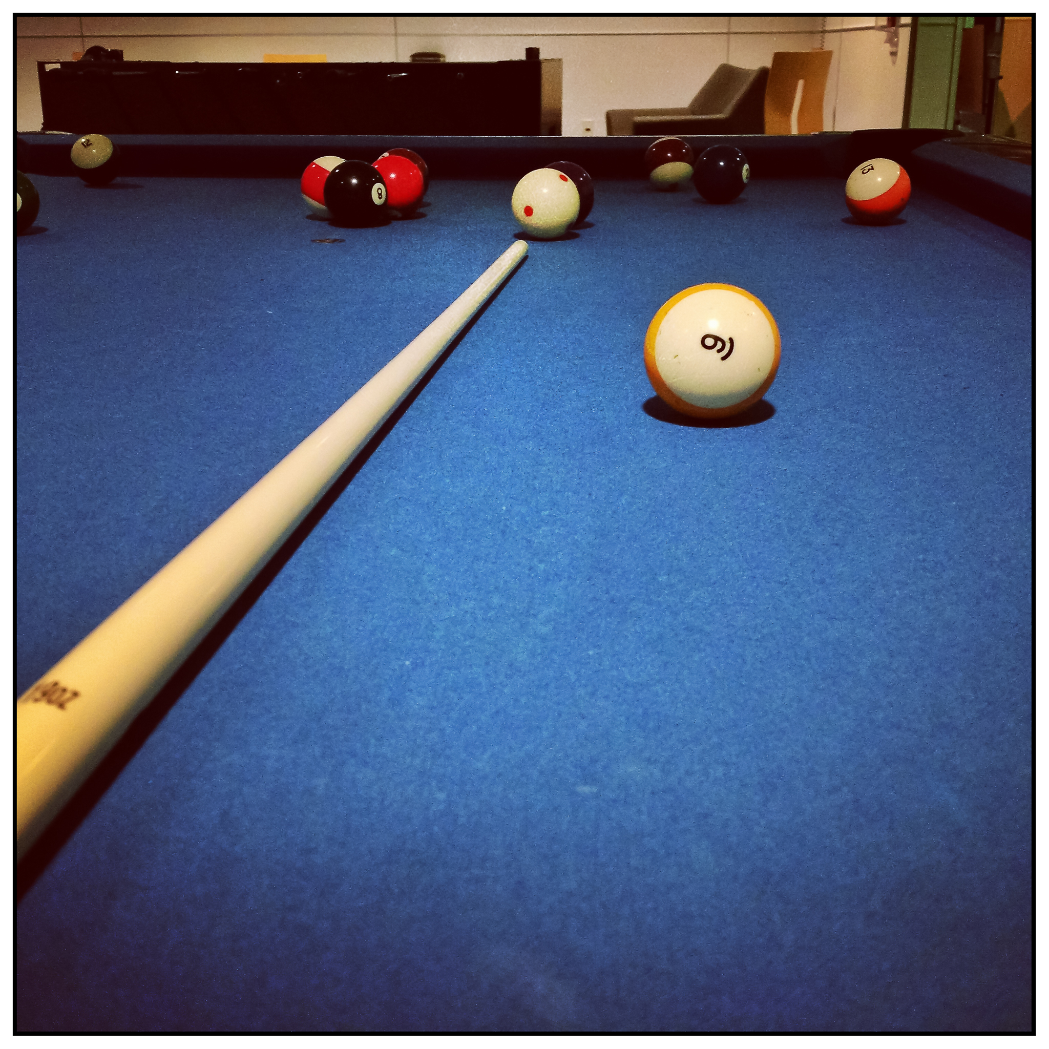 We ended up playing some ping pong before I worked my way over to one of the pool tables. I quickly setup the table and launched the cue ball into the arrangement. I’m not the greatest pool player but it allowed me to grab this image with the phone. What was more fun though was playing ping pong with my daughter. I’m going to have to drag her back there for a rematch… 🙂
