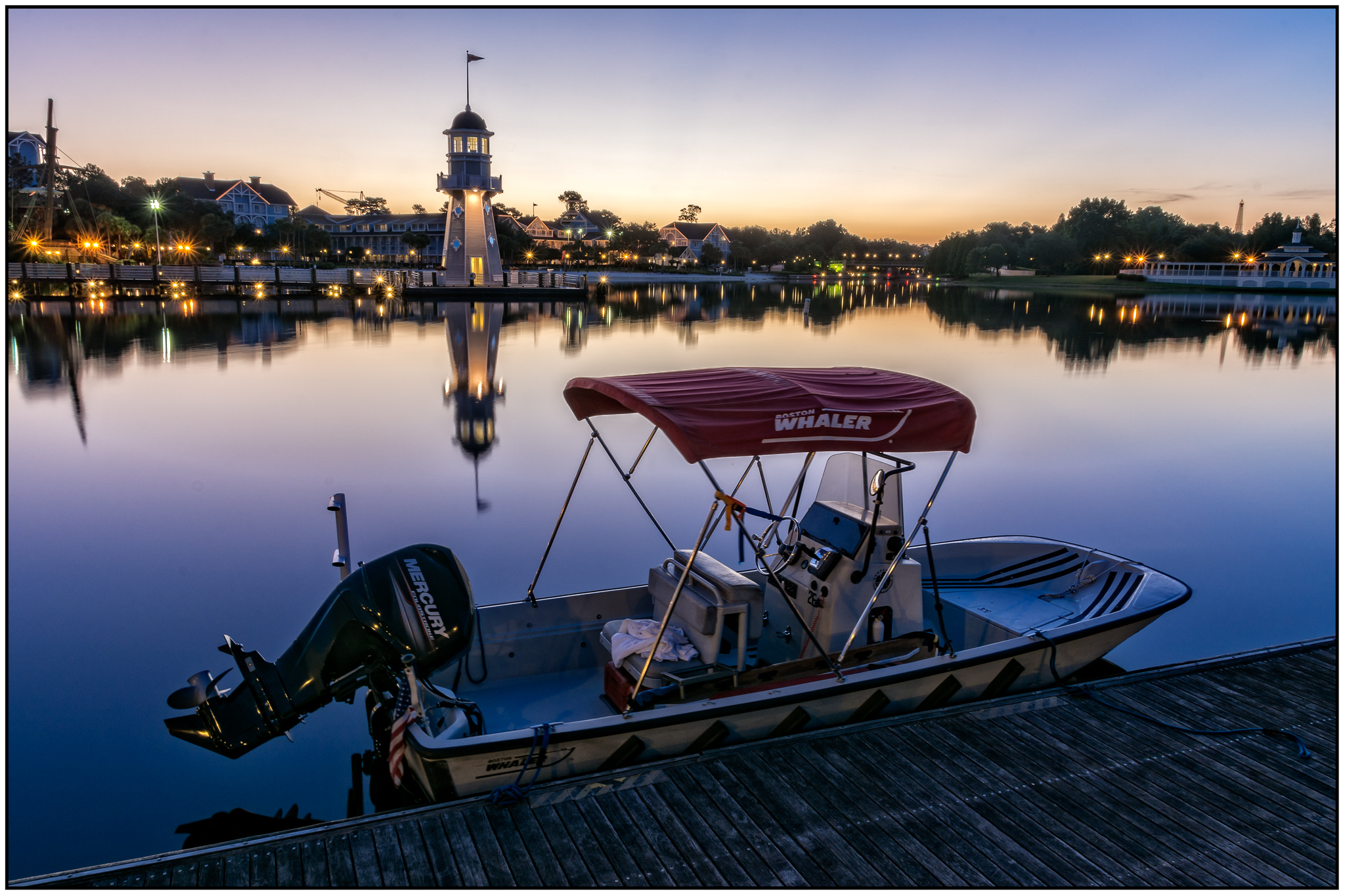 It wasn’t until a coupe of mornings later that I managed to get out early to capture some images of the resort just before sunrise. The first image is from the bridge over to my room looking toward the Alligator Bayou rooms. The other two images I have shared previously but they highlight how nice the resort looks all illuminated.