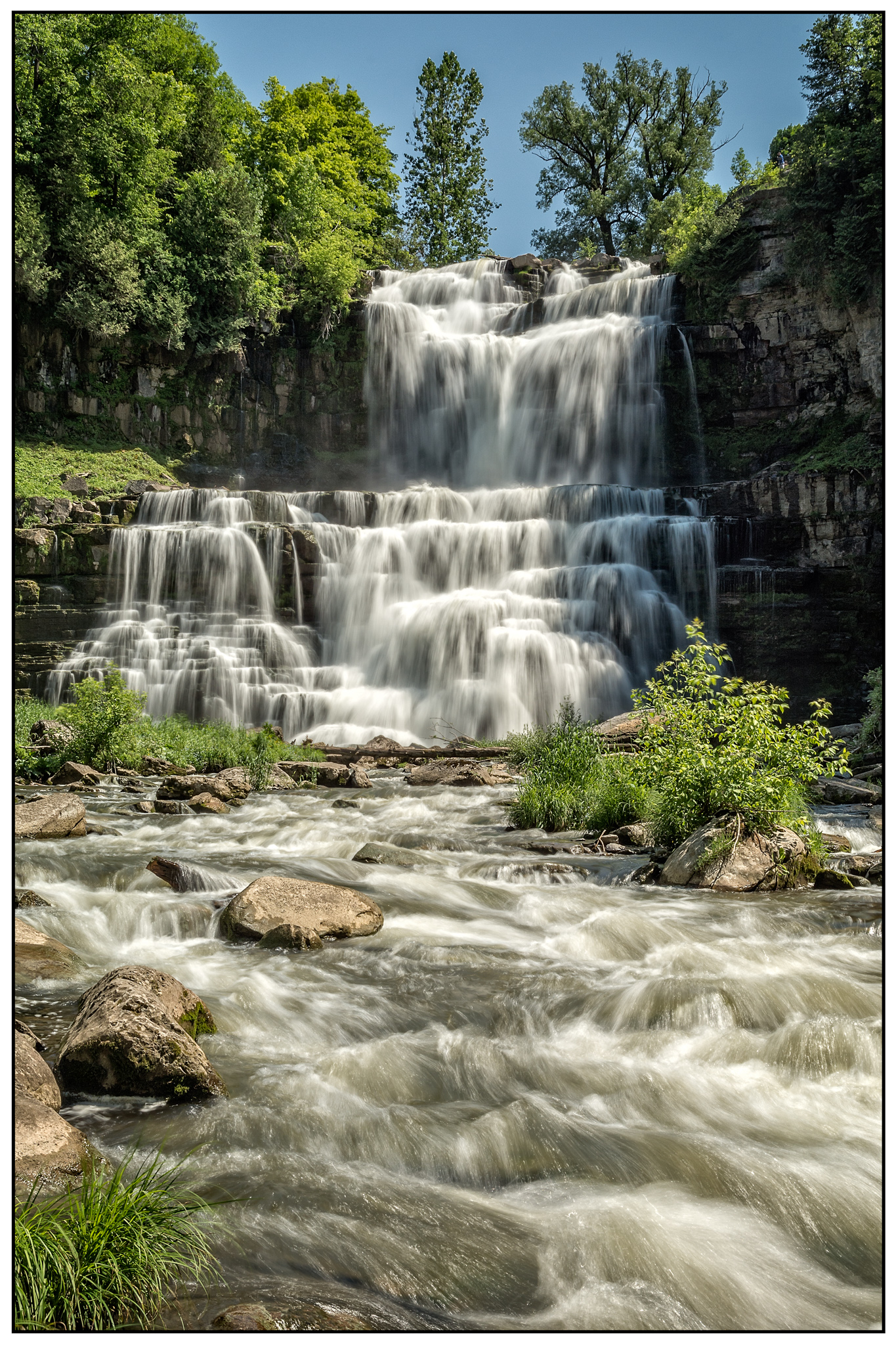 Let’s complete the trifecta during my state park day and quickly visit Chittenango Falls. As I was heading home I debated if I should visit this park. It was right in the middle of the afternoon. The clouds had cleared giving me a beautiful blue sky but I was worried about too much sun on the waterfall.
