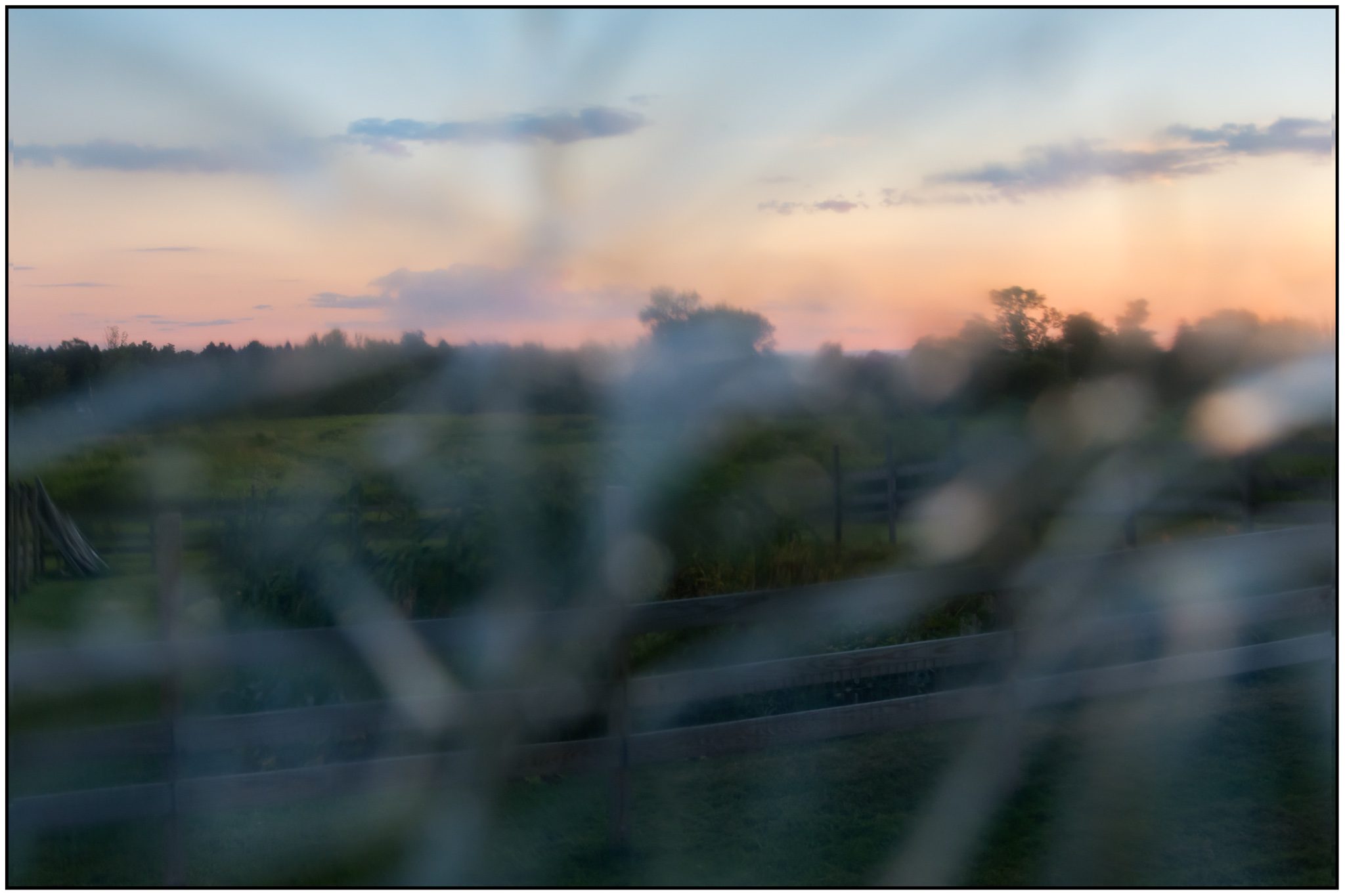 Blurry could be an easy one… put the camera in manual mode and capture an image out of focus. That would have been my last resort. Luckily I remembered something I had read about using plastic wrap to create a unique view through the lens. I crinkled it up (as best you can plastic wrap) and covered the front of the lens. A quick walk across the road at sunset and walla!