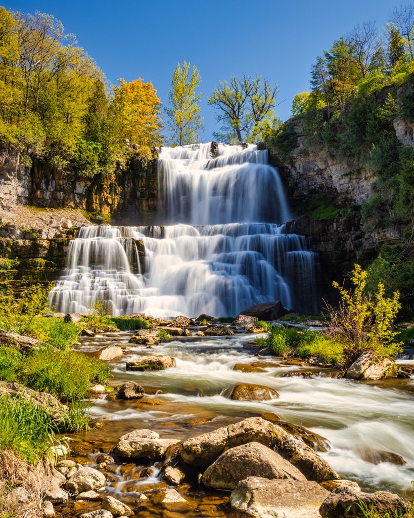 The afternoon sun does cast a shadow across the face of the waterfall but I do not believe it “ruins” the image. I was able to bring some light back into the shadows in post-processing. The key is not to destroy all of the shadows, only to enhance them. An image is only as good as the shadows, the light highlights but the shadows define…