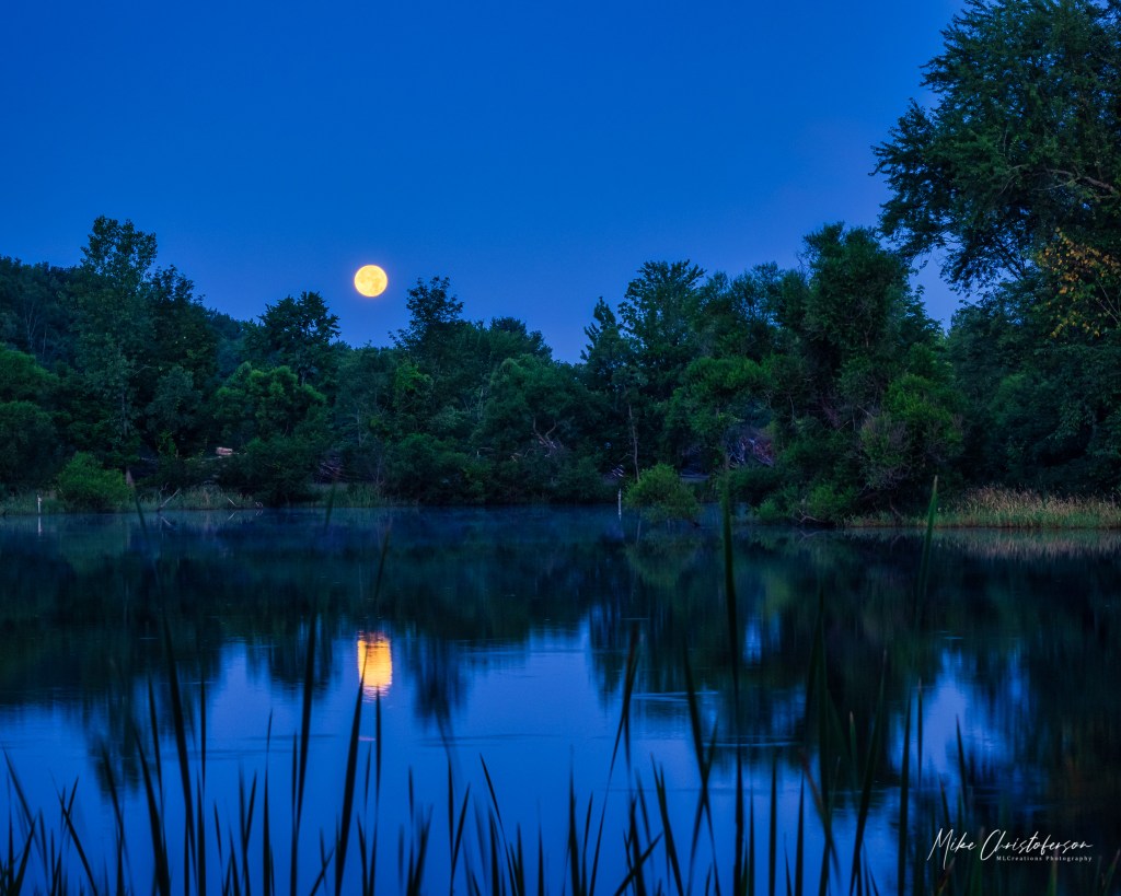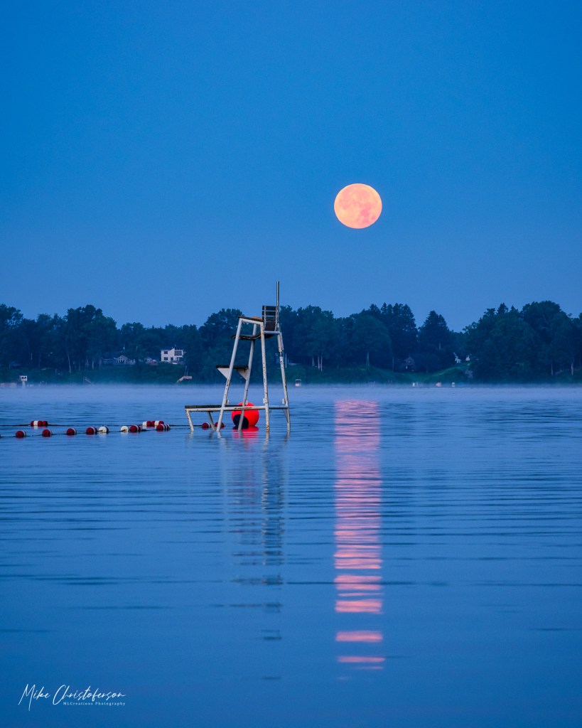 This is the Buck Moon, at least according to the Farmer’s Almanac. The time of the year when the antlers of male deer are in full growth mode. Other names for this moon include Salmon Moon, the Berry Moon, Raspberry Moon and the Thunder Moon. With the sun rising in the East and the moon taking on the magenta color, I can definitely see this one being the Berry Moon