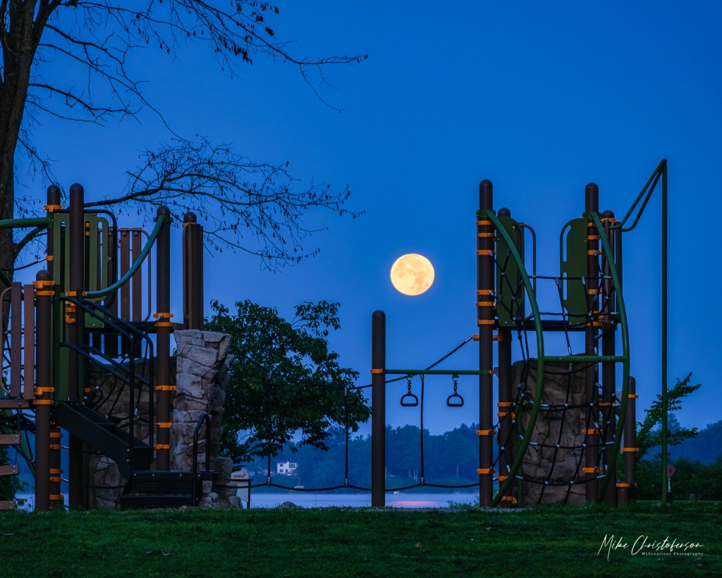 I decide I need to focus stack this one as I could not setup the tripod far enough away to achieve good focus throughout. I focus on the bench and then quickly focus on the moon. I will bring both images into Photoshop to combine them into one. Next! Time is slipping…