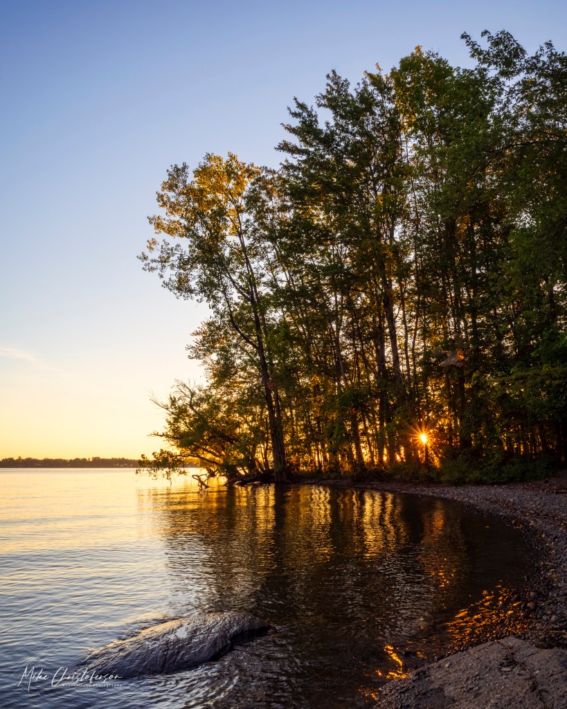 Anyway… I was thinking of Delta Lake so I went back to my pics from a week ago. Even looking at them on the screen has a similar affect as being there. I can hear the lap of the water against the shore and the leaves rustling in the trees. If you leave the beach and follow the path through the woods you will find this little alcove. I timed it well to capture the last peek of the sun through the trees.