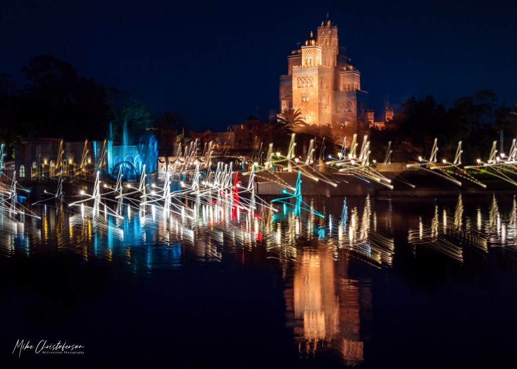 It was late at Epcot and I was on my way back to the resort. I stopped for a look at the Morocco Pavilion from the International Gateway. I can’t resist a good reflection and the pavilion is a favorite of mine. I didn’t get one of the tripod legs completely locked. During the 4 second exposure the camera started to fall over. I caught it but not before this image was captured.