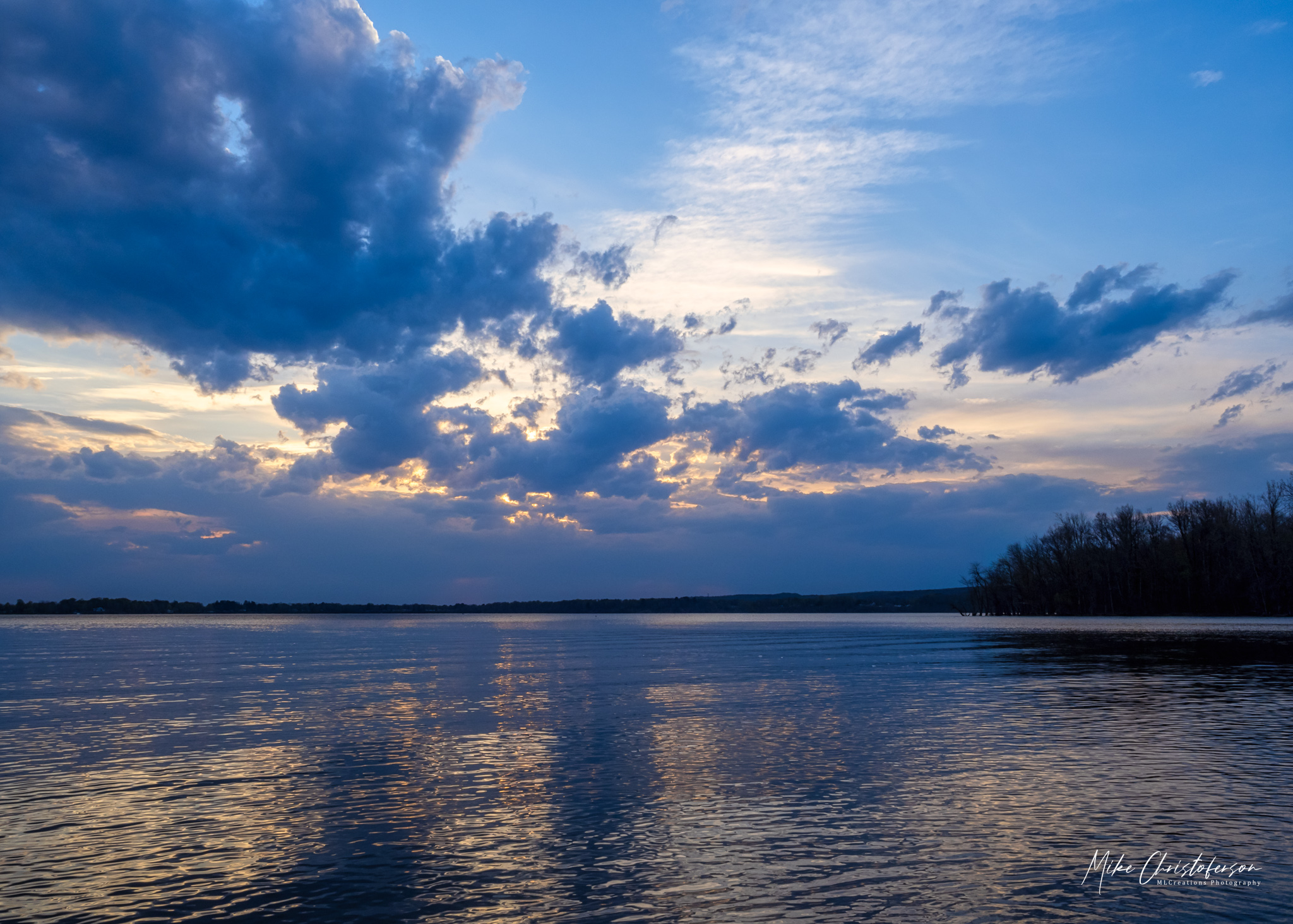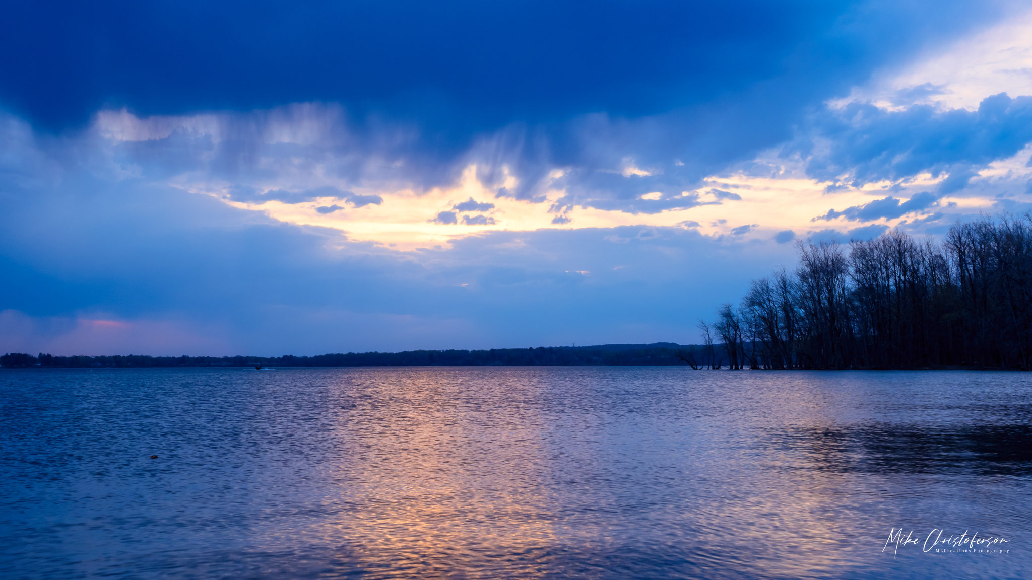 I was determined to stay as the sky progressed from sunset into the blue hour but the more I looked at the clouds coming across the lake I was sure I would end up getting wet. One last image hoping to capture the rain in the clouds and then I would make my way back to the car.