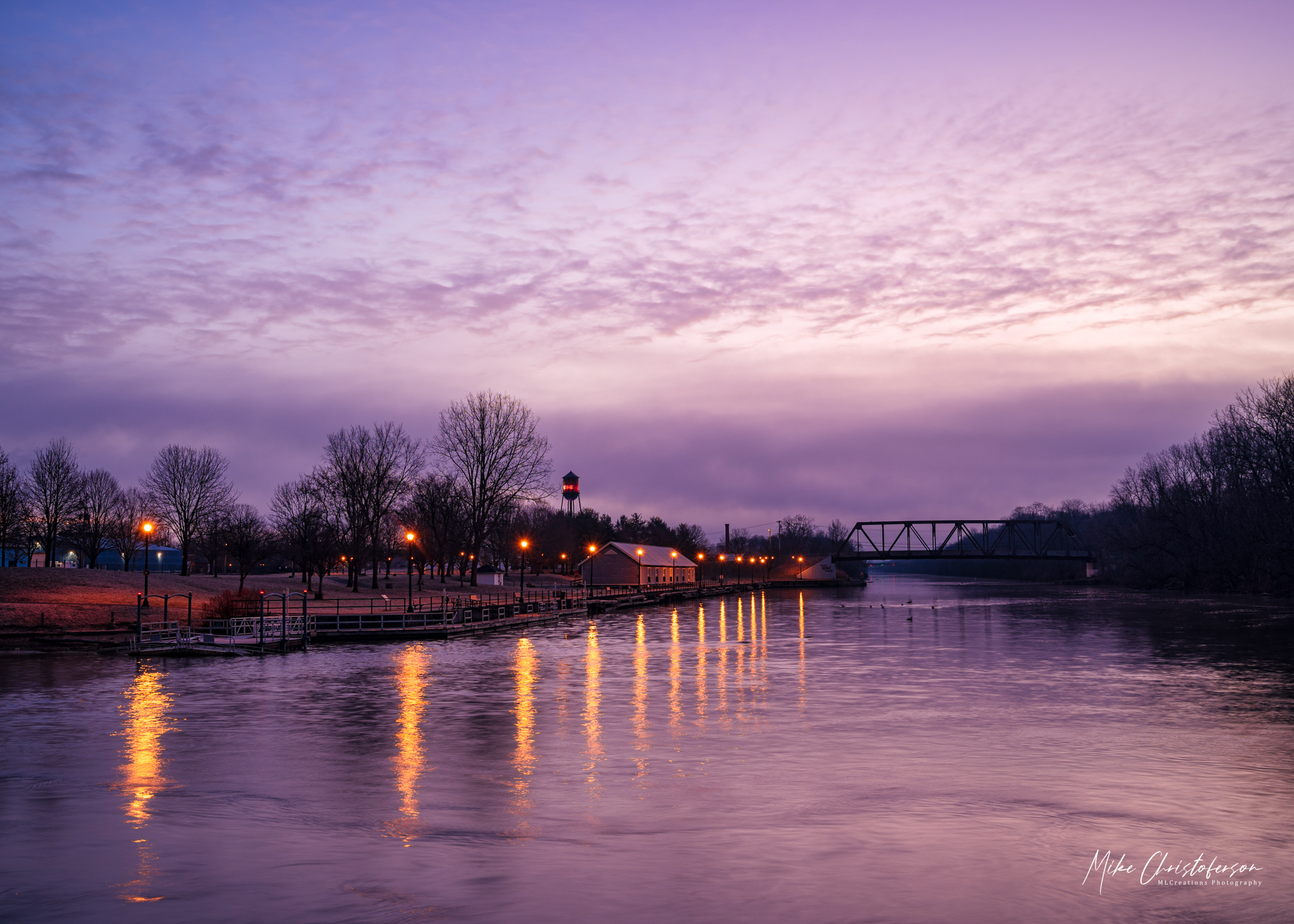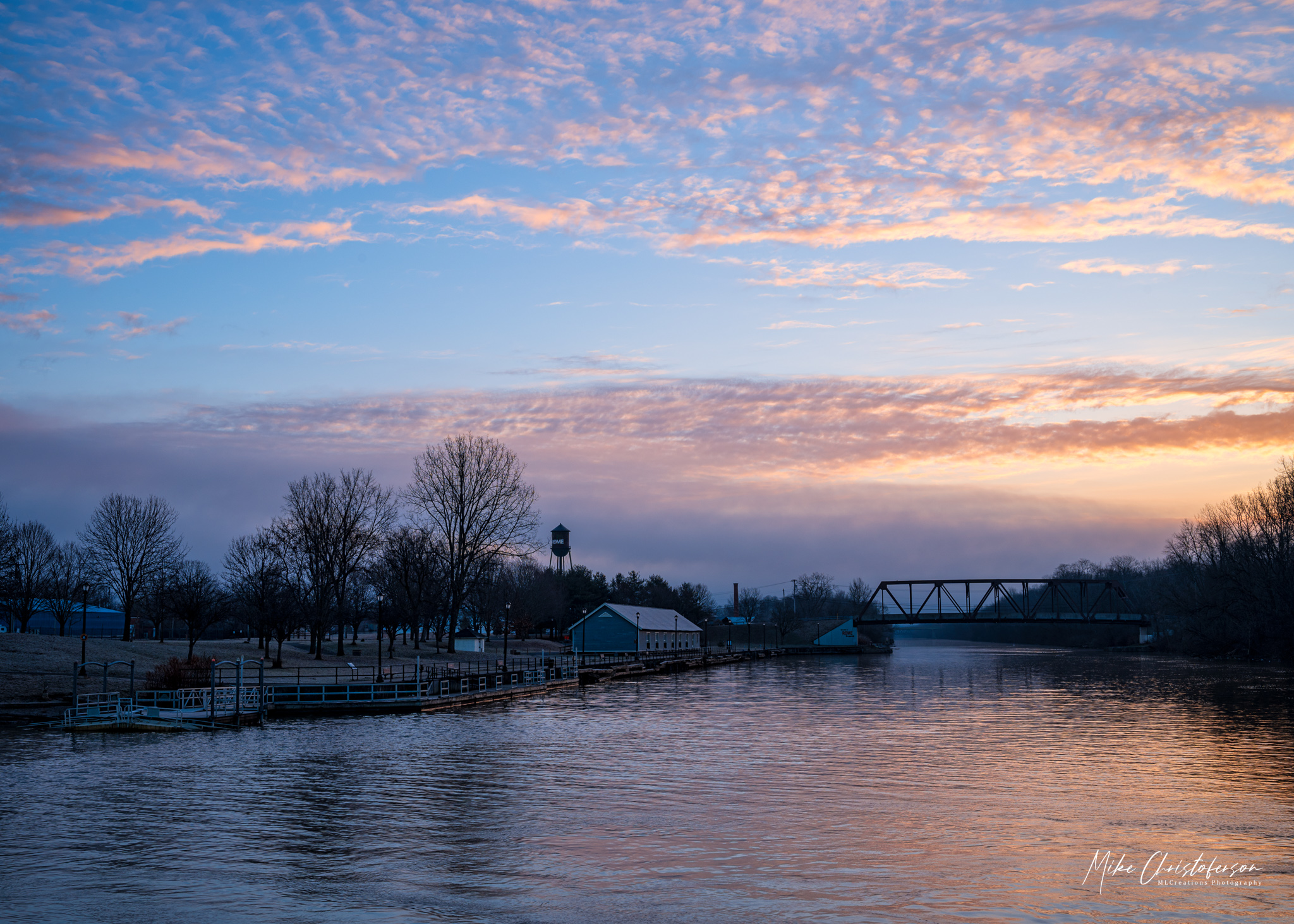 I went to my go to place in Rome, Bellamy Harbor. I had other ideas for additional challenges I wanted to capture but the sunrise was first on my list. I got lucky as the fence preventing me from reaching my favorite spot at one end of the harbor had been rotated again allowing me to walk right in. I probably should have left the camera in one spot and waited but I’m not always good at waiting. These are basically the same view…