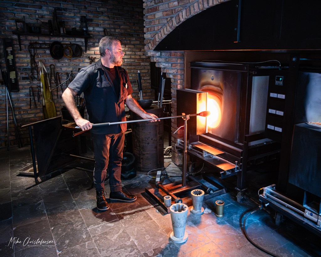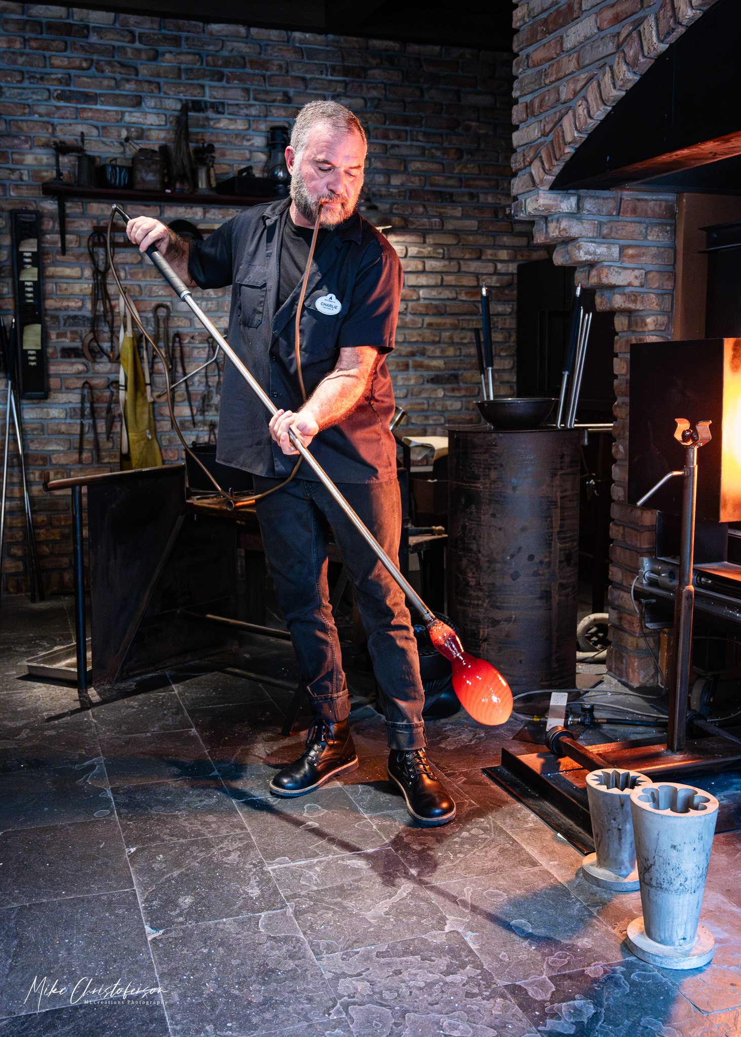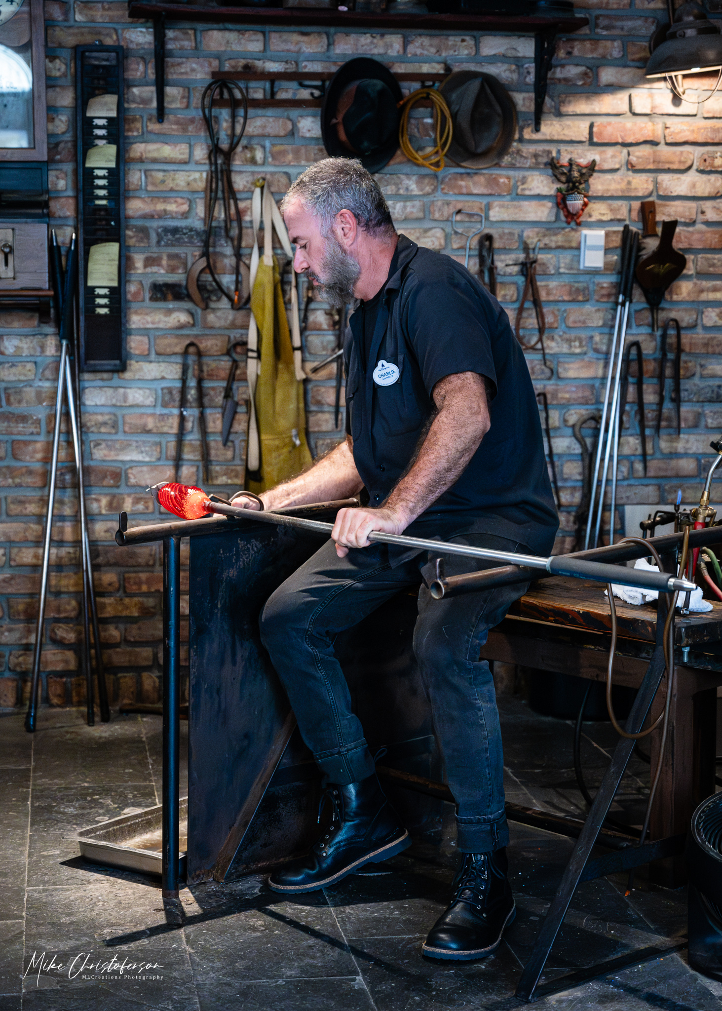 I arrived at the park early and explored as much as possible with my camera. After the park officially opened and guests could leave the hub, I rode quite a few rides before deciding it was time for lunch. On my way down Main Street I stopped in Crystal Arts. This is the glassworks store of the Arribas Brothers in the Magic Kingdom. My interest wasn’t in the intricate glass sculptures, it was the glassblower at the back of the store.