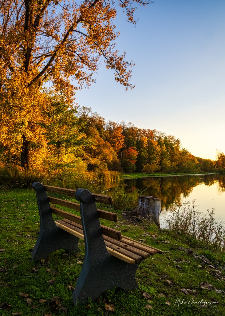 Considering the hunt was in January I’ll follow the winter, spring, summer and fall rotation. I selected images from the pond at the entrance to the park. This area has more trees around the water which will help show the seasons as well as a bench. I have a soft spot for including a bench in my images…