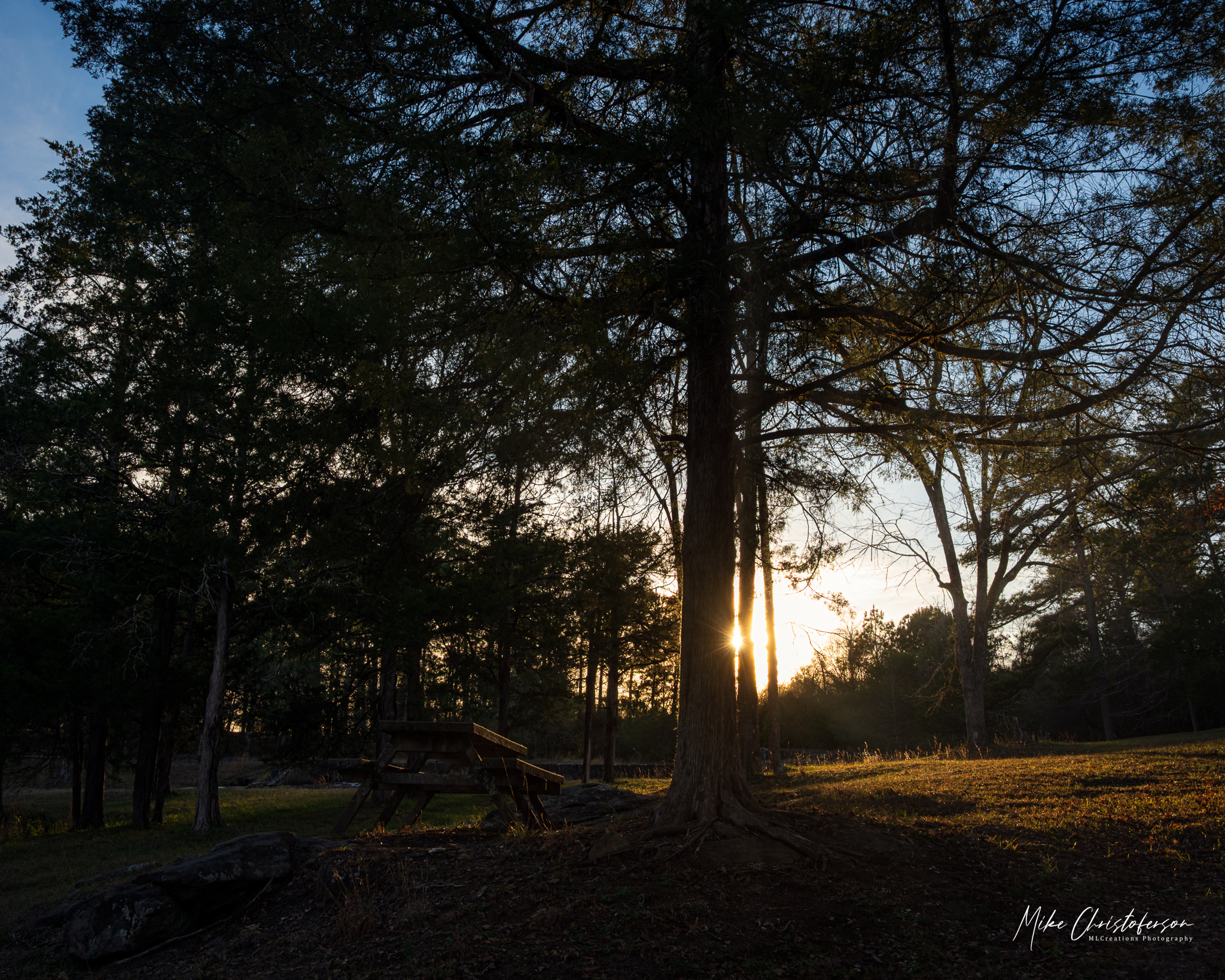 Good eye! This is the same tree and table from an earlier post. I couldn’t resist the sun peeking around the tree, the light on the grass and the highlighted edges of the table. What can I say, the scene screamed click the shutter now!