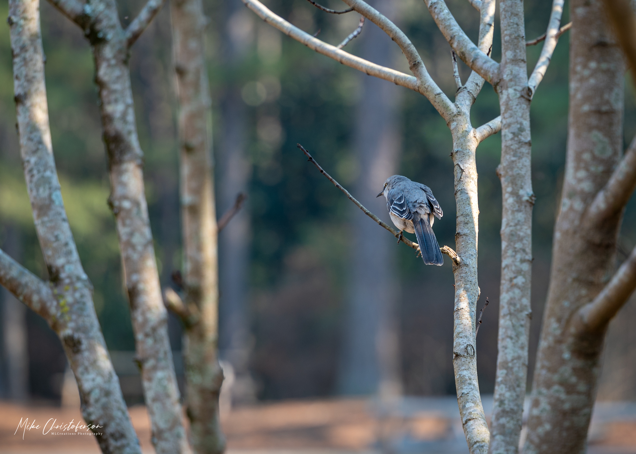 As I left the butterfly house at Callaway Gardens on Sunday I found a friendly bird sitting in a tree. As I mentioned yesterday I didn’t have my zoom lens with me but I gave it a try with the 105mm macro lens. My friend was not in any hurry to escape me and I was able to get closer than I thought possible. These images are still cropped heavily but I’m happy with the results…
