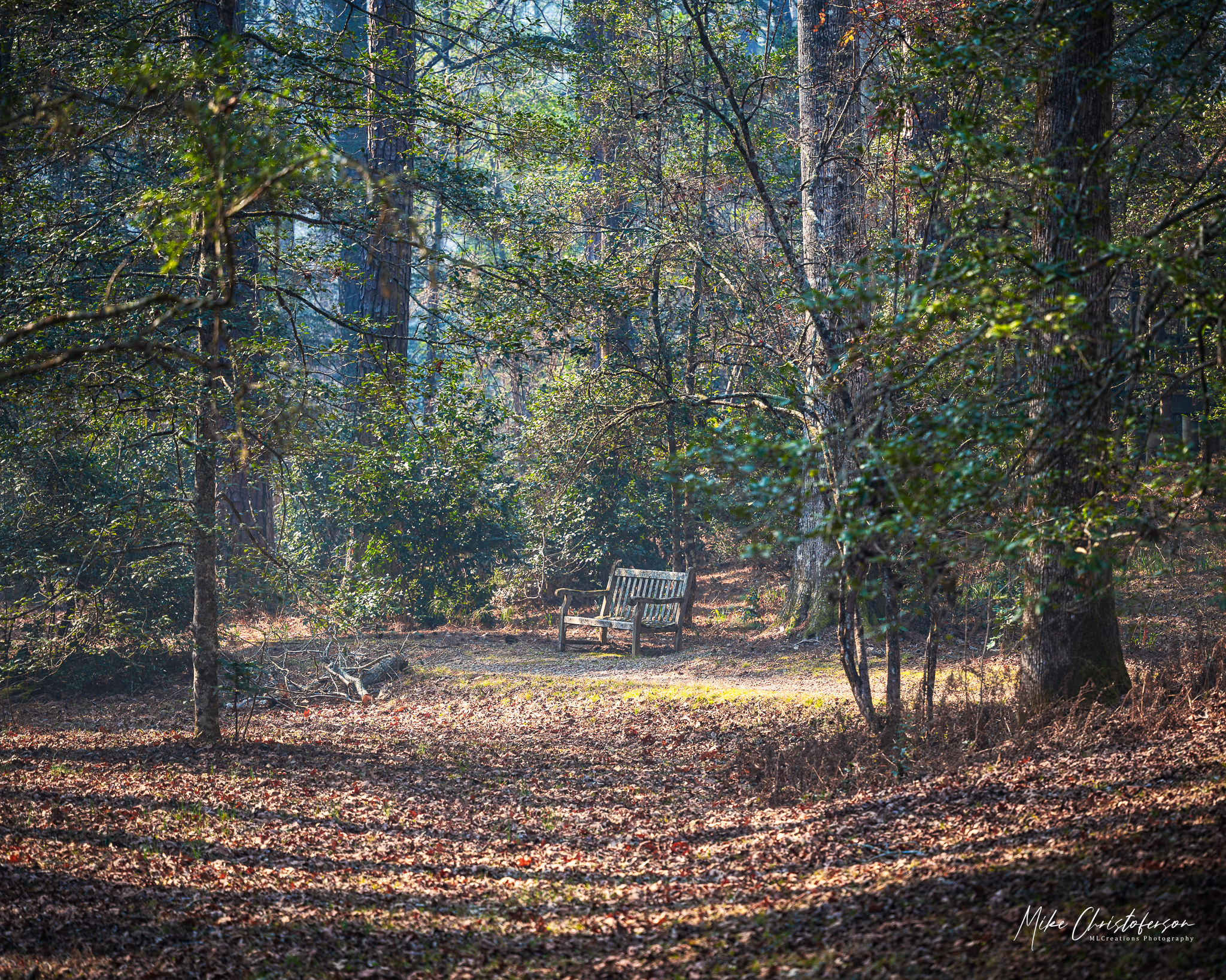 By now we all know my penchant for photographing benches. The bench with the implied invitation to sit and enjoy the view fascinates me. Add wonderful lighting and the camera is heading toward my eye before the thought to capture the picture has even crossed my mind.