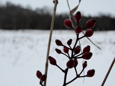 The wind was blowing just a little more than I would have liked but I managed to get the top down view of the berries that I wanted. The background winter grass was a better color than the white snow, trees and grey sky I used yesterday. I was able to play more with the depth of field on the top down view which suited what I envisioned.