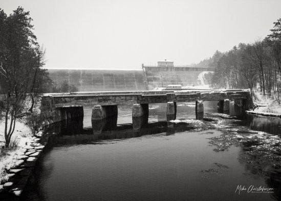 The image a couple of days ago was down at the water’s edge in front of the canal aqueduct. This is the big view of the damn as scene from the bridge over the river. As much as I like the dam, I’m more fascinated by the aqueduct. When building the dam, there still needed to be a way for the Black River Canal to be accessible so a series of locks was built on the right side of the dam and the aqueduct was constructed over the Mohawk River. I found this image on the Low Bridge Production website.