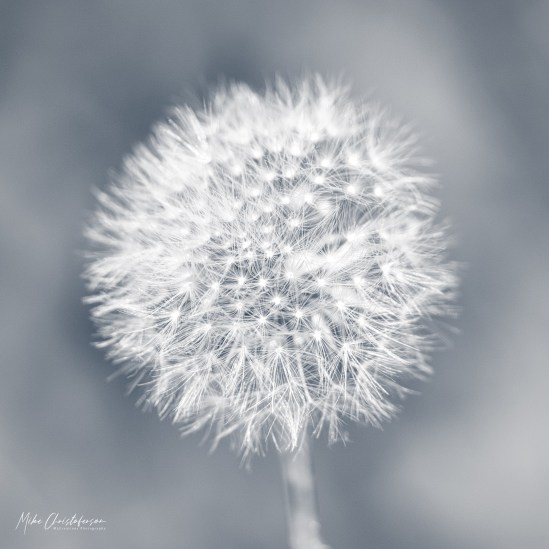 I like the monochrome look for most of my dandelion images and this one was no different. I did change it up slightly and applied a split tone effect. This is where you add a slight color to the highlights and shadows of a black & white image. For this particular image I added some very muted yellow to the highlights and blue to the shadows. When balanced well it can create a striking enhancement to an image.