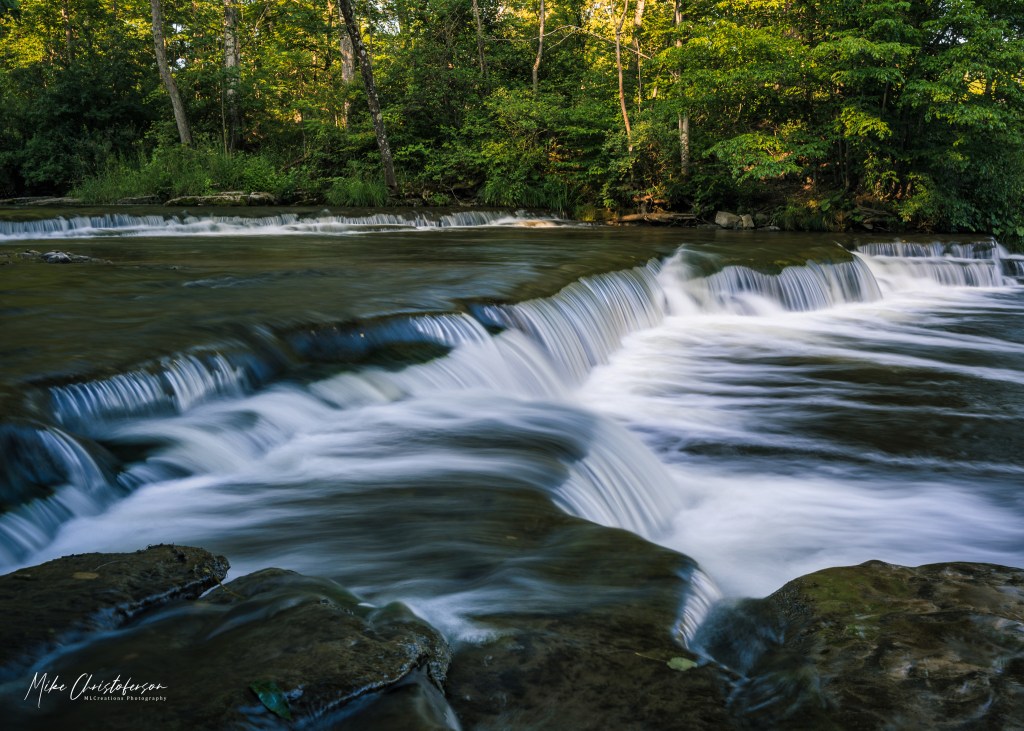 My first inclination (and why is this how I am now?) was to drive through the park and go find another activity. I think the design of the park will work in my favor. The road through the park is one way, and you have to drive completely around to exit. As I approached the waterfall area on the opposite side of the creek, I made up my mind not to let a few people stop me. I parked the car, grabbed the tripod, threw the camera bag over my shoulder and headed to the creek to explore.