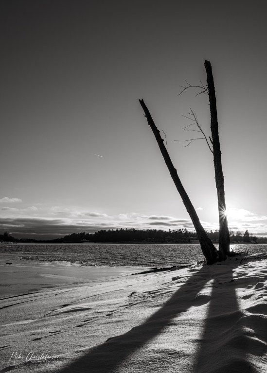 I’ll admit I have a “thing” for photographing leafless trees in silhouette. There is a fascination with the amount of detail seen in the bare branches. These three trees at Delta Lake have been my subject numerous times throughout the years. I especially like when I have converted the image to black and white, which to me, greatly enhances the appeal of the silhouette. Plus, it works well for my Monochrome Winter series.