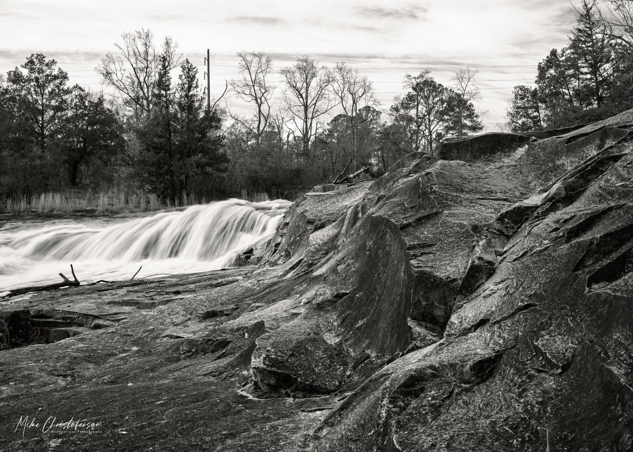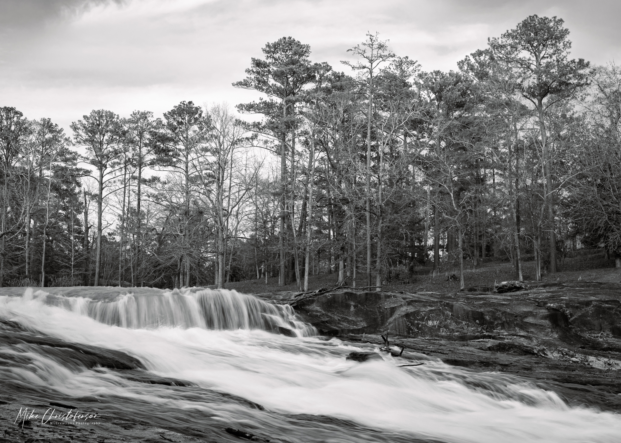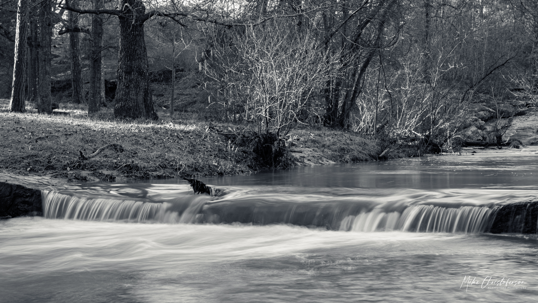 I’ve learned over the years of playing in the water with my camera that I would be OK with any shutter speed slower than 1/15s to get some silky looking water. With this camera I can hand-hold that kind of exposure. The sun was starting to disappear behind the trees so I could play with the ISO and close down the aperture to get the shutter speed I needed.