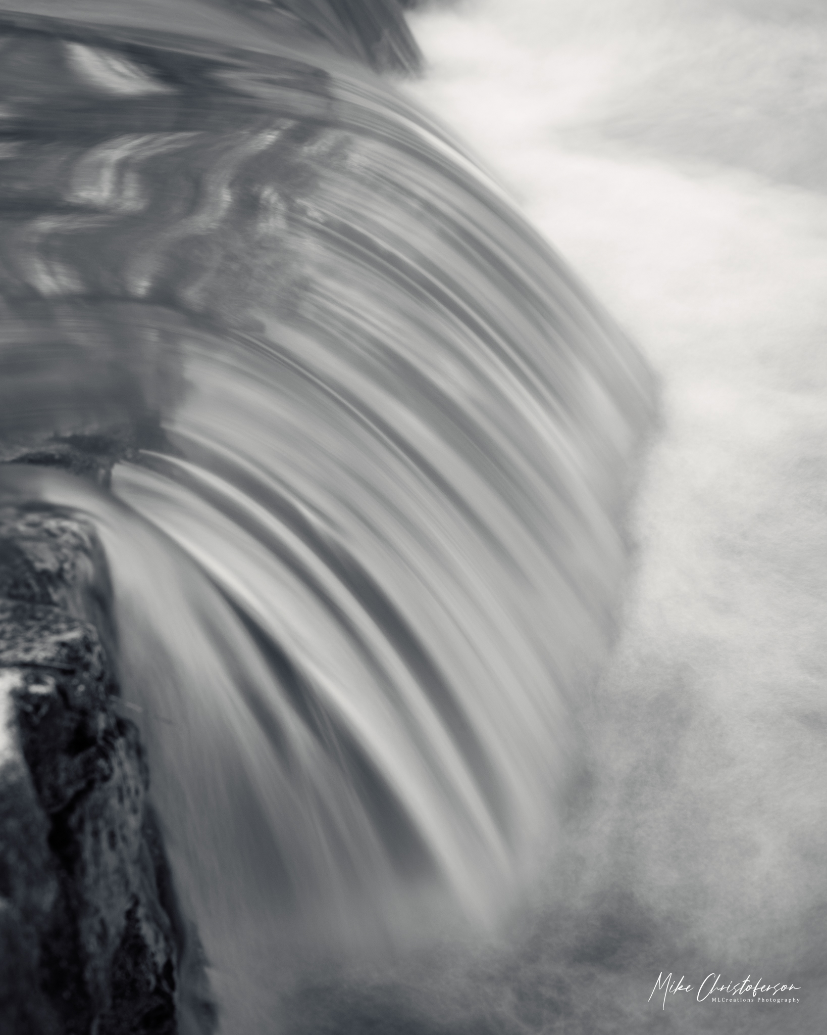 I crossed to the other side and played with the flowing water for a while. As I was leaving the area, I looked back one last time and grabbed a conventional landscape image. It works for me…